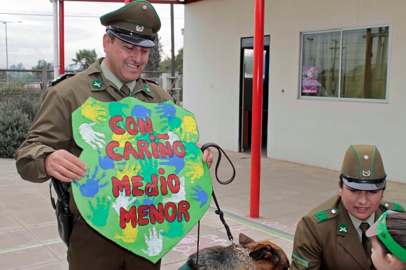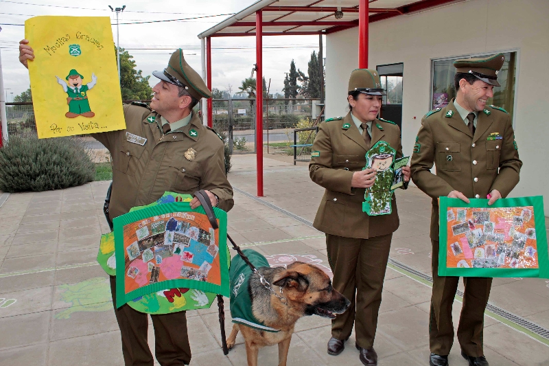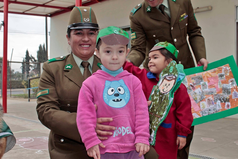 Además de darle este enfoque educativo, los párvulos del jardín infantil pudieron disfrutar con los trucos y piruetas del perro policial “Rambo” y entregarles algunos presentes a Carabineros por la celebración de su aniversario.